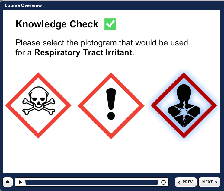 Our online OSHA Hazard Communication (HAZCOM) – Aligned with GHS training course was designed for employees who work near or may be exposed to any type of hazardous chemical and need OSHA HAZCOM training. Employees have an “Employee’s Right to Know” about hazardous chemicals in their work environment, and are required to be trained within 30 days of being hired, and also annually in many states.